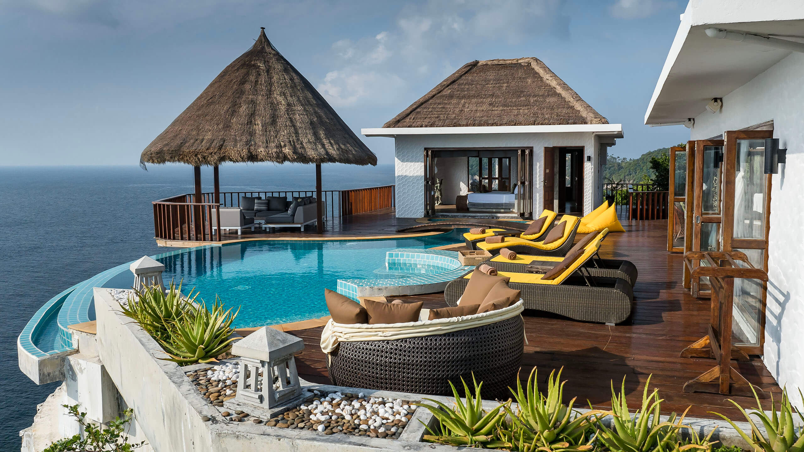 The small island Koh Tao is situated in the Gulf of Thailand north of Koh Samui and Koh Phangan. The villas is situated less than 100m from the coast with steep roads, on the southern end of the island on a cape 50 meters above the sea between two beautiful beaches, Tian Og and Sai Daeng, which are 7-15 min walk away. Away from it all, still only a 10 min drive down to the villages Chalok, Mae Haad and Sairee where shops, restaurants, bars and nightlife is to be found.